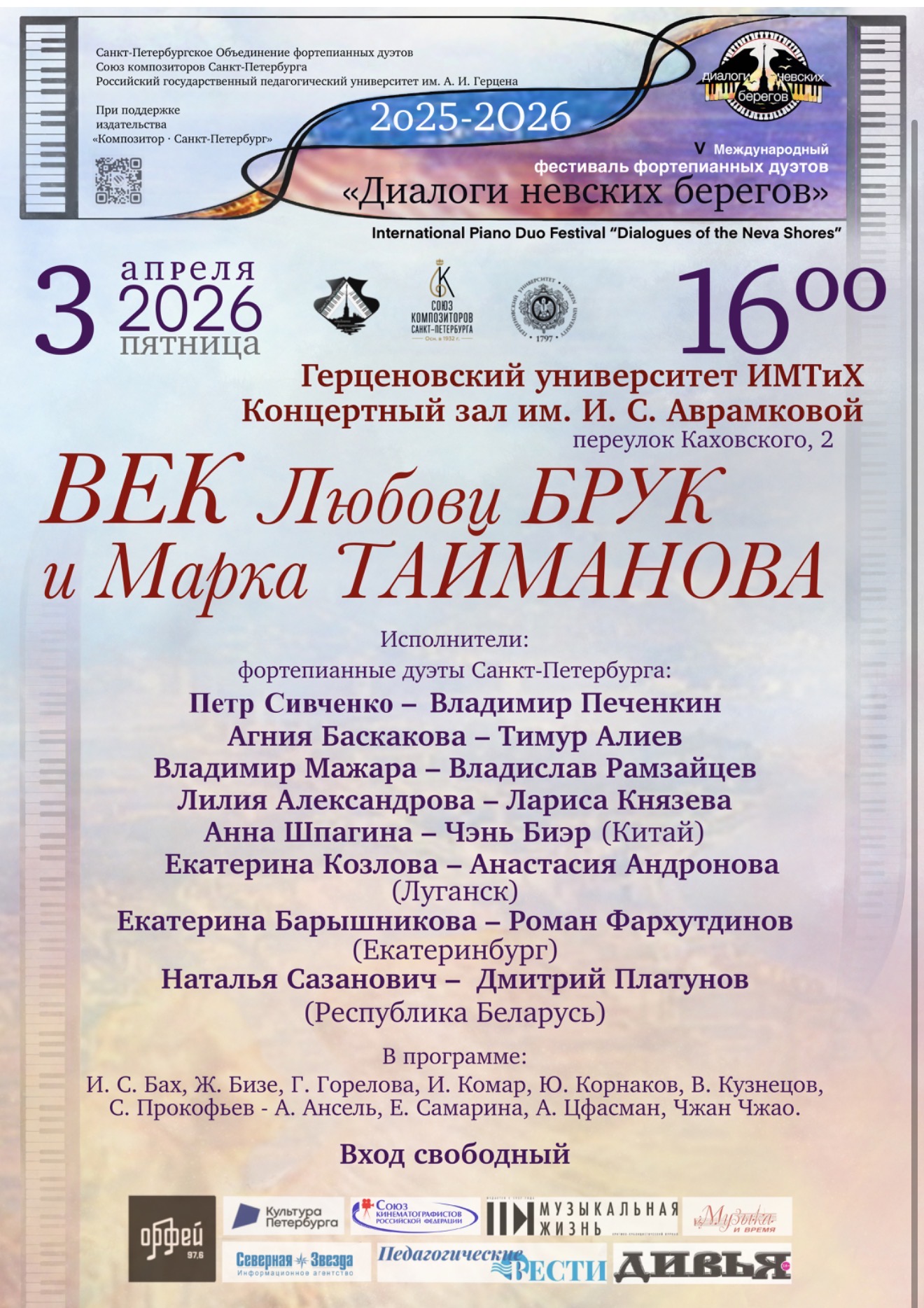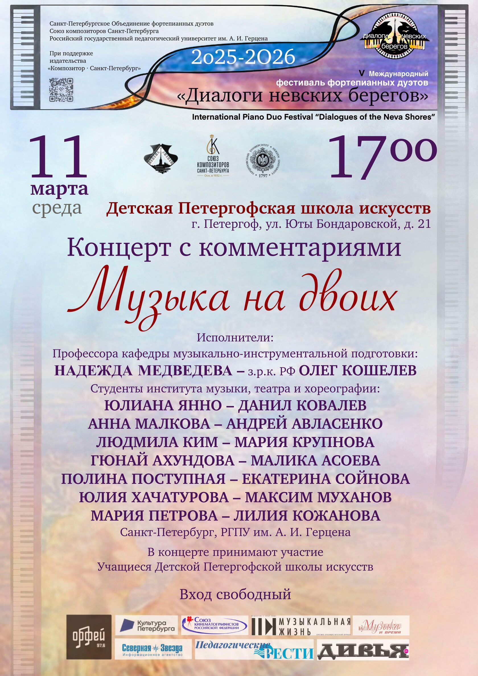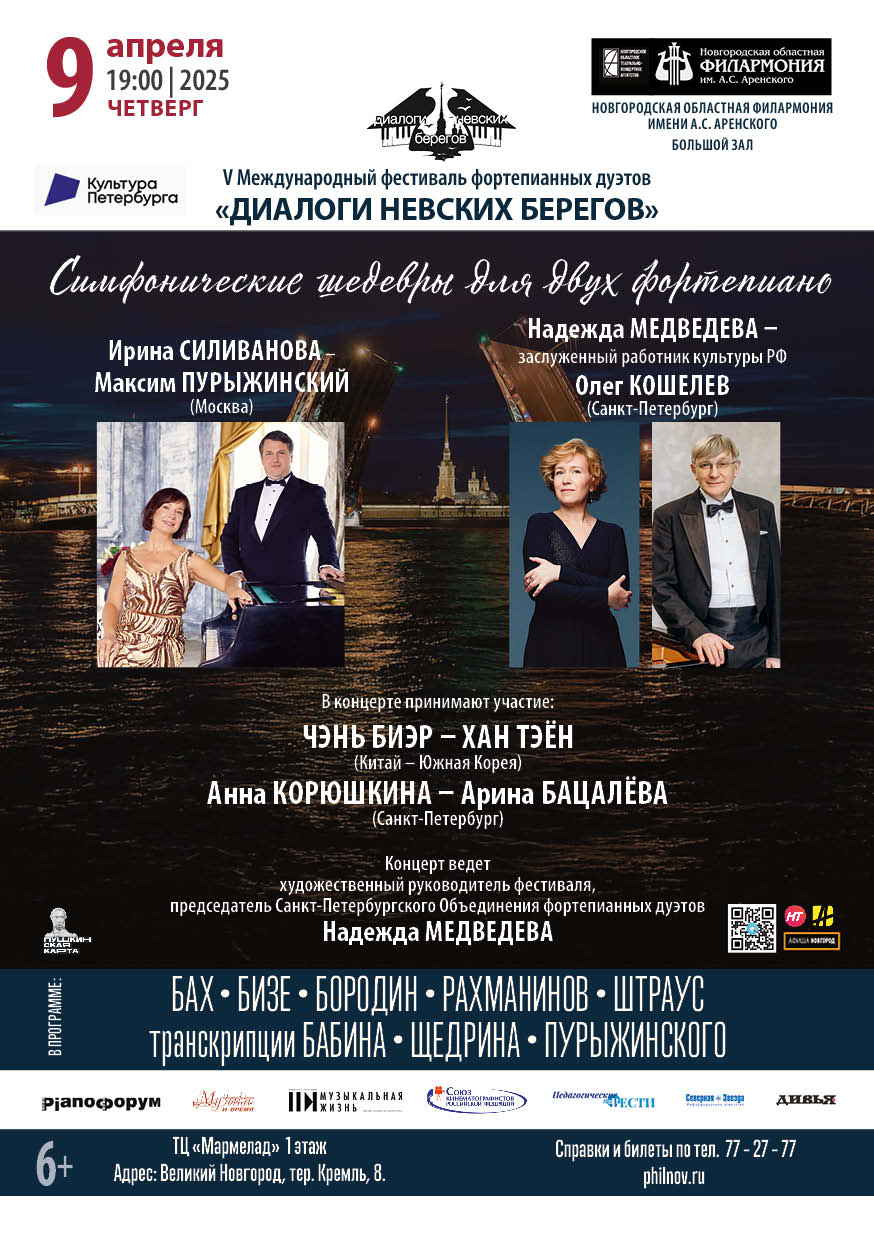 Международный фестиваль фортепианных дуэтов «Диалоги невских берегов» одинаково привлекателен для профессионалов и просто ценителей академической музыки. Сочетая в себе разнообразие форматов и доступность, он сохраняет лучшие традиции русской культуры и отражает современные жизненные реалии.